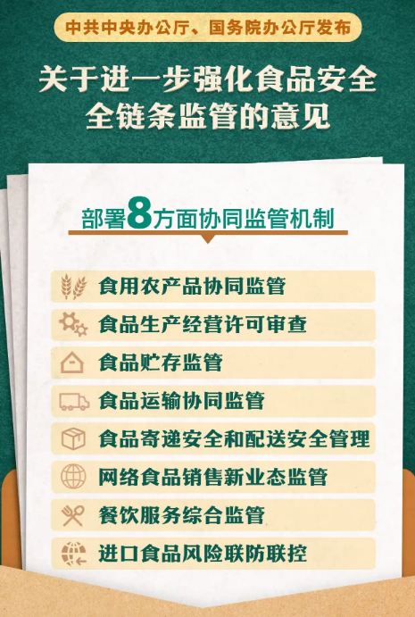 进一步强化食品安全全链条监管 中办、国办印发意见 详情